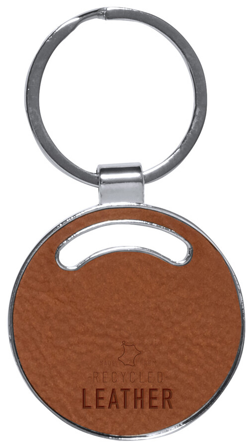 Kovový přívěsek na klíče potažený recyklovanou kůží.