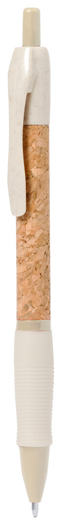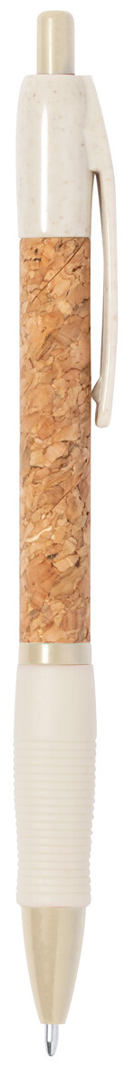 Ekologické plastové kuličkové pero z pšeničné slámy s pouzdrem potaženým přírodním korkem a pryžovým úchopem. S modrou náplní.