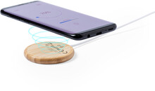 Magnetická bezdrátová rychlá nabíječka (10W) v bambusovém pouzdře s LED kontrolkou nabíjení. Včetně samolepicího kovového kroužku pro použití magnetické funkce na jakémkoli bezdrátově nabíjitelném zařízení. Včetně USB nabíjecího kabelu.