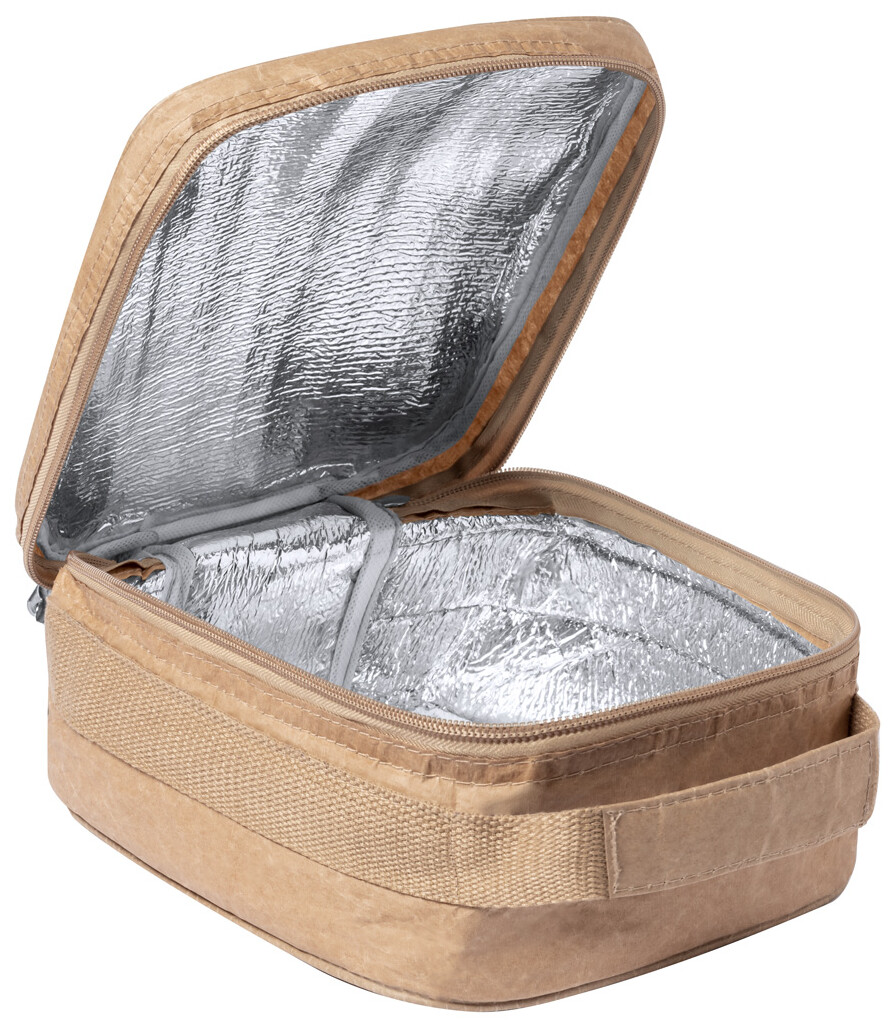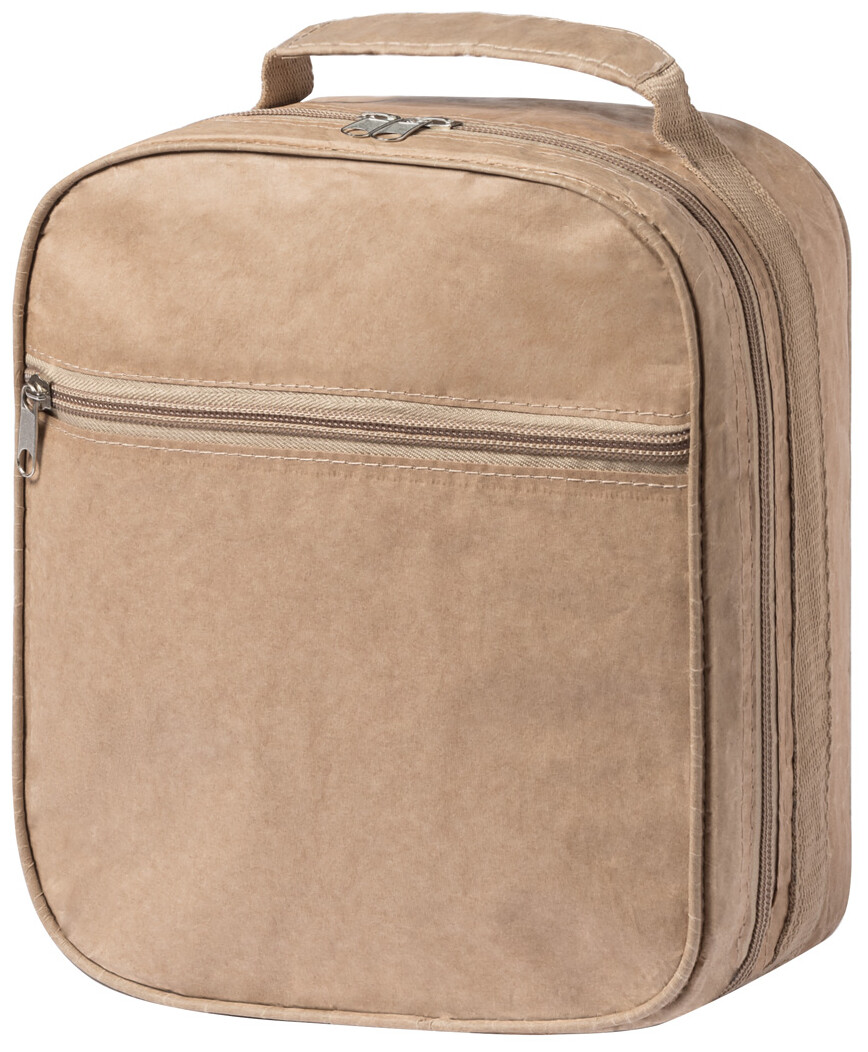 Chladicí taška na zip z laminovaného recyklovaného papíru s hliníkovou výplní a přední kapsou.
