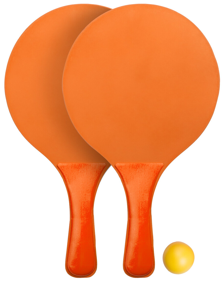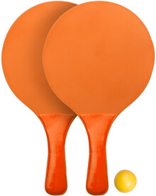 Plážový tenis se 2 barevnými raketami a jedním míčkem, vyrobený ze dřeva a plastu.