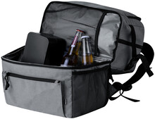 RPET batoh s PEVA polstrovanou chladicí přihrádkou, kapsami na zip, bočními síťovanými kapsami, polstrovanými zády a ramenními popruhy. Polyester 600D RPET, s výrazným štítkem RPET.