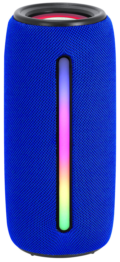 Bezdrátový reproduktor potažený polyesterovou tkaninou vícebarevné LED světlo (s 5 režimy svícení) a popruh na přenášení. Se 2 reproduktory, funkcí hands-free volání a vestavěnou dobíjecí baterií (1200 mAh). Včetně nabíjecího kabelu USB.