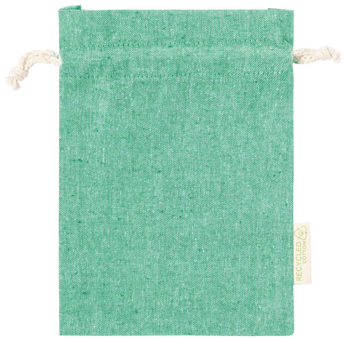 Opakovaně použitelný pytlík na potraviny z recyklované bavlny se stahování na šňůrku. 100% recyklovaná bavlna, 120 g/m2.