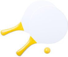 Plážový tenis se 2 velkými raketami a jedním míčkem ze dřeva a plastu.