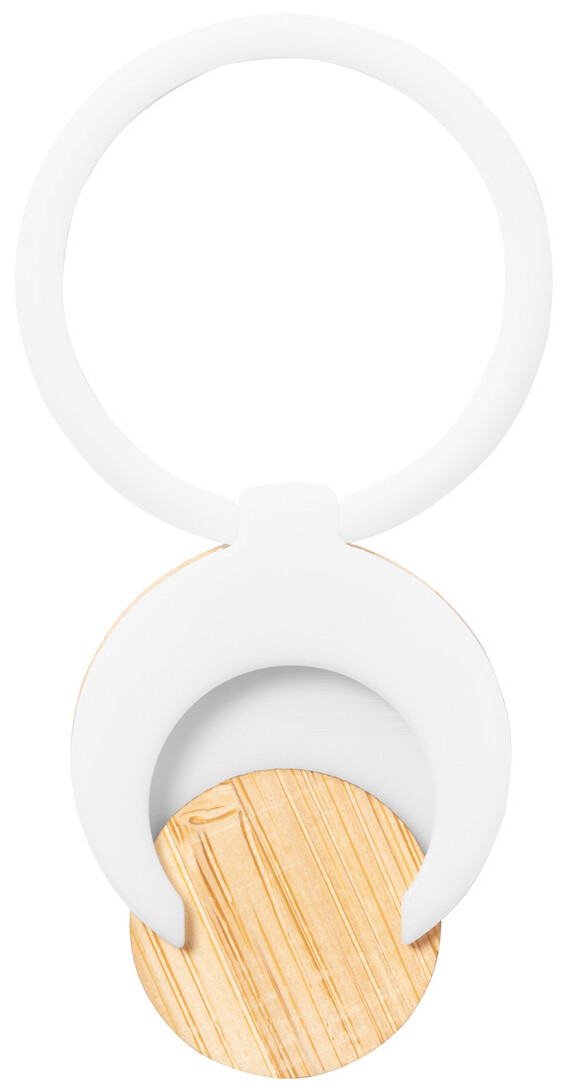 Kulatý ABS plastový držák na mobil se samolepicí spodní stranou a bambusovou mincí do nákupního vozíku.