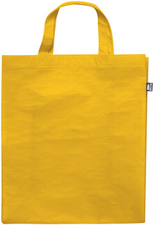Nákupní taška z polaminovaného polyesteru RPET s klínem a krátkými uchy, 110 g/m2. S výrazným štítkem RPET.
