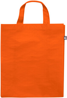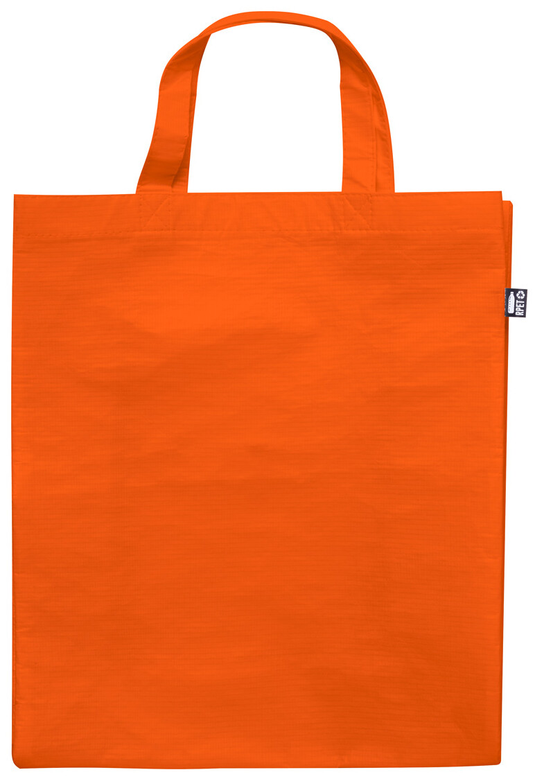 Nákupní taška z polaminovaného polyesteru RPET s klínem a krátkými uchy, 110 g/m2. S výrazným štítkem RPET.
