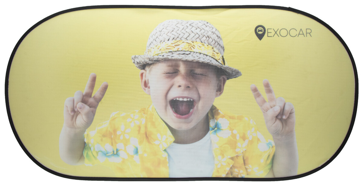 Skládací clona na přední okno pro sublimační tisk. Dodáváno s přísavkami.