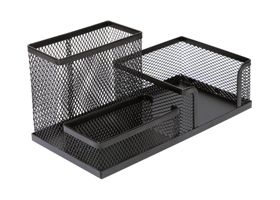 - Součásti: stojánek na tužky, přihrádka na kancelářské doplňky, kostka na poznámkový bloček