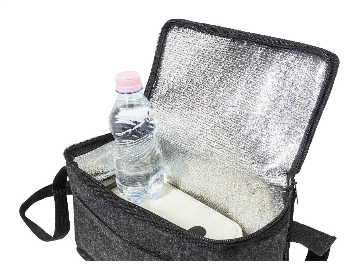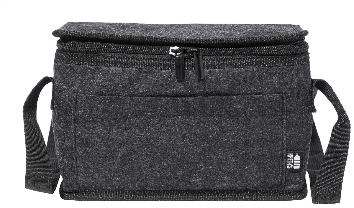 Chladicí taška na zip z RPET plsti s hliníkovým polstrováním, přední kapsou a bočními rukojeťmi. S výrazným štítkem RPET.
