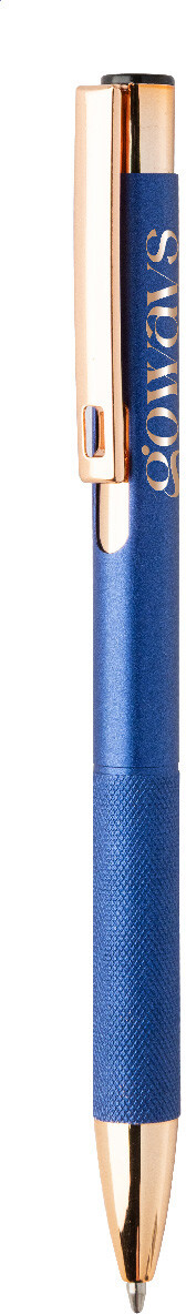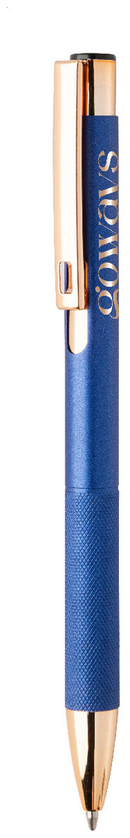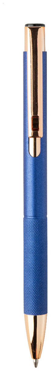 Kuličkové pero z recyklovaného hliníku s matným tělem, texturovaným úchopem a detaily růžového zlata. Se speciálním povrchem pro zrcadlové laserové gravírování v barvě růžového zlata. S modrou náplní.