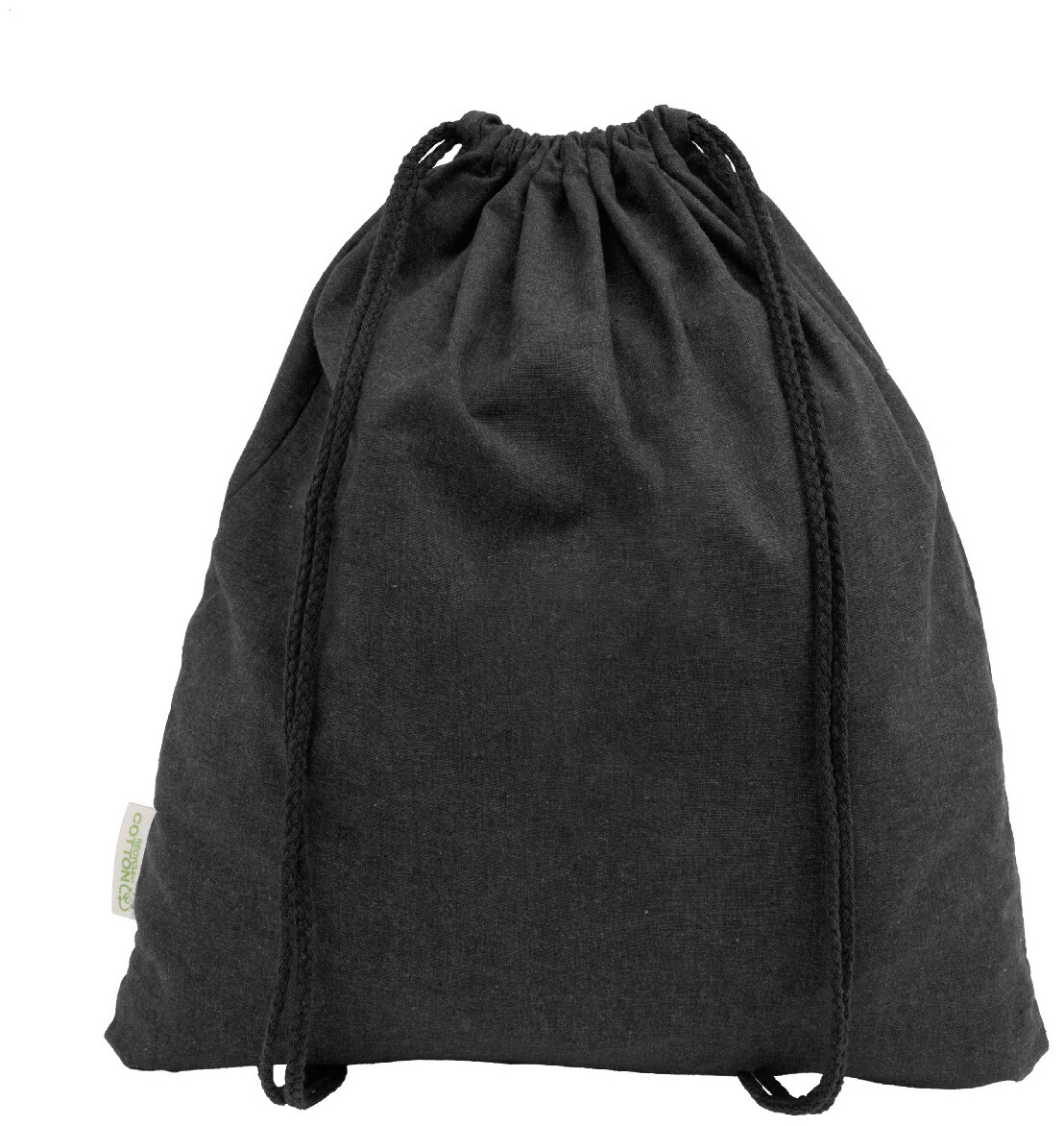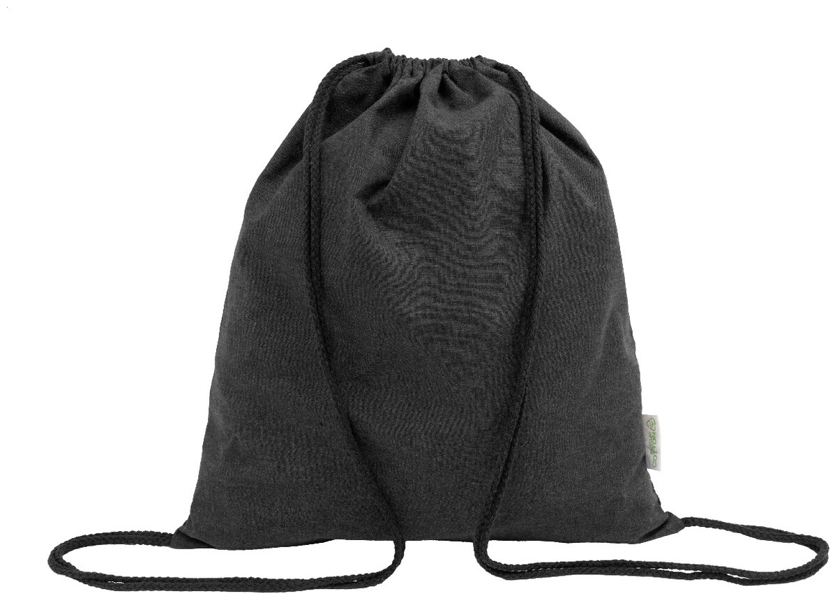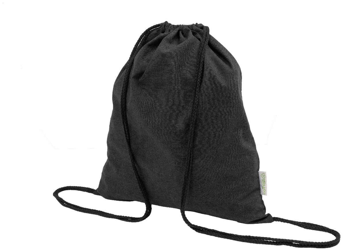 Vak se stahovací šňůrkou ze 70 % recyklované bavlny a 30 % polyesteru RPET, 140 g/m2. S výrazným štítkem z recyklované bavlny.