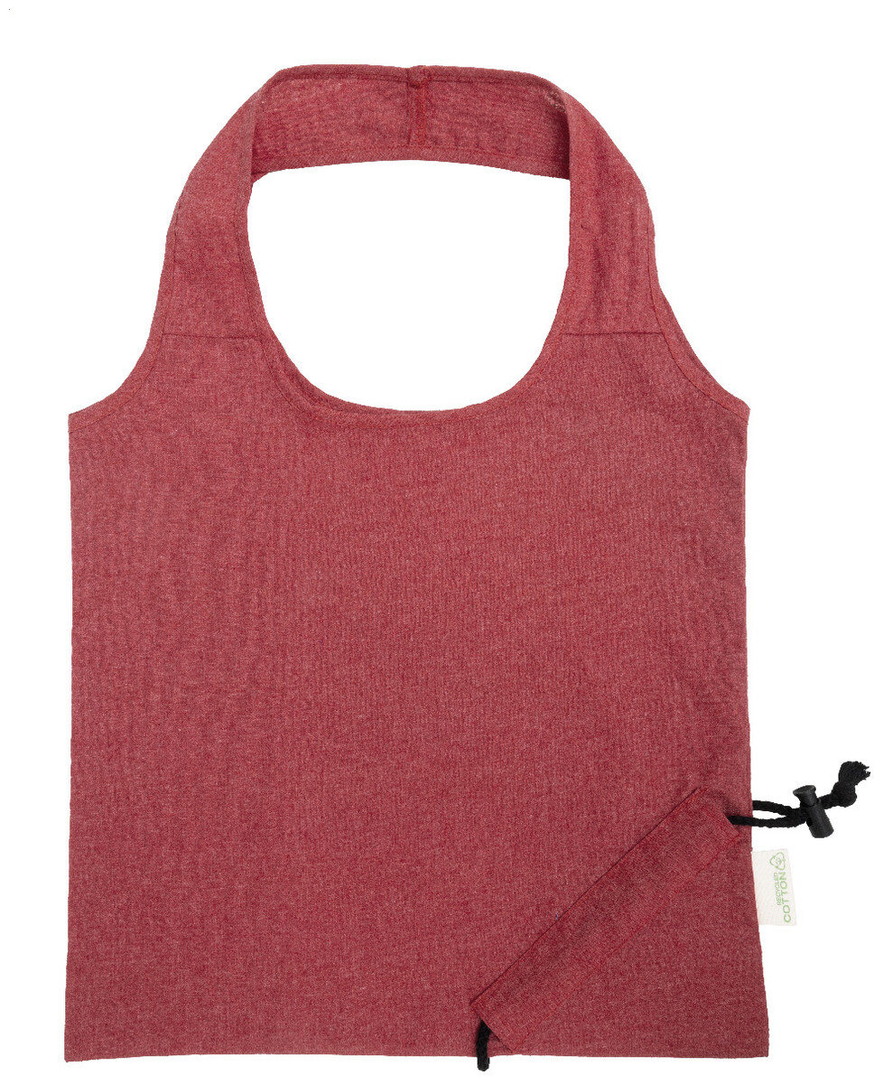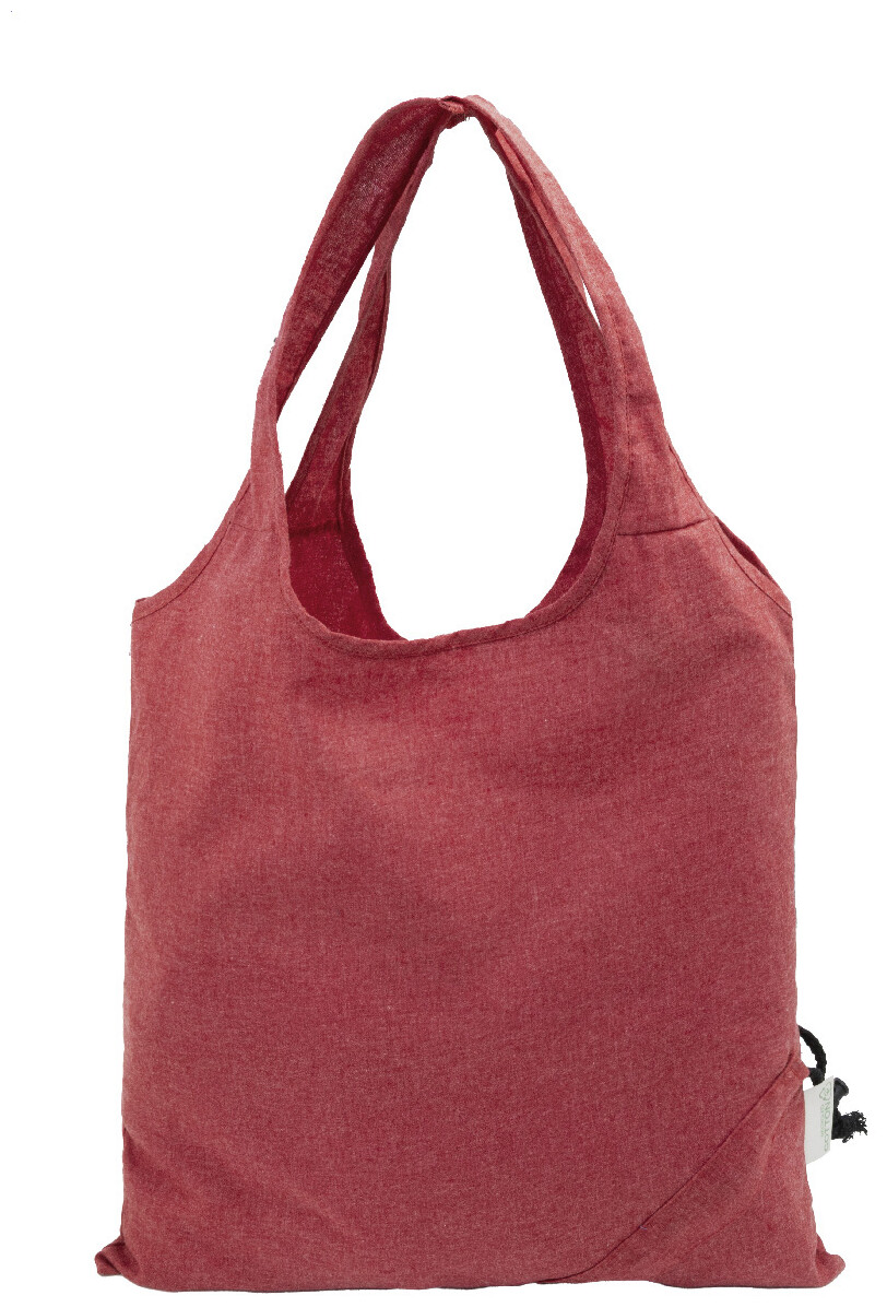 Skládací nákupní taška ze 70 % recyklované bavlny a 30 % polyesteru RPET, 140 g/m2. S výrazným štítkem z recyklované bavlny.