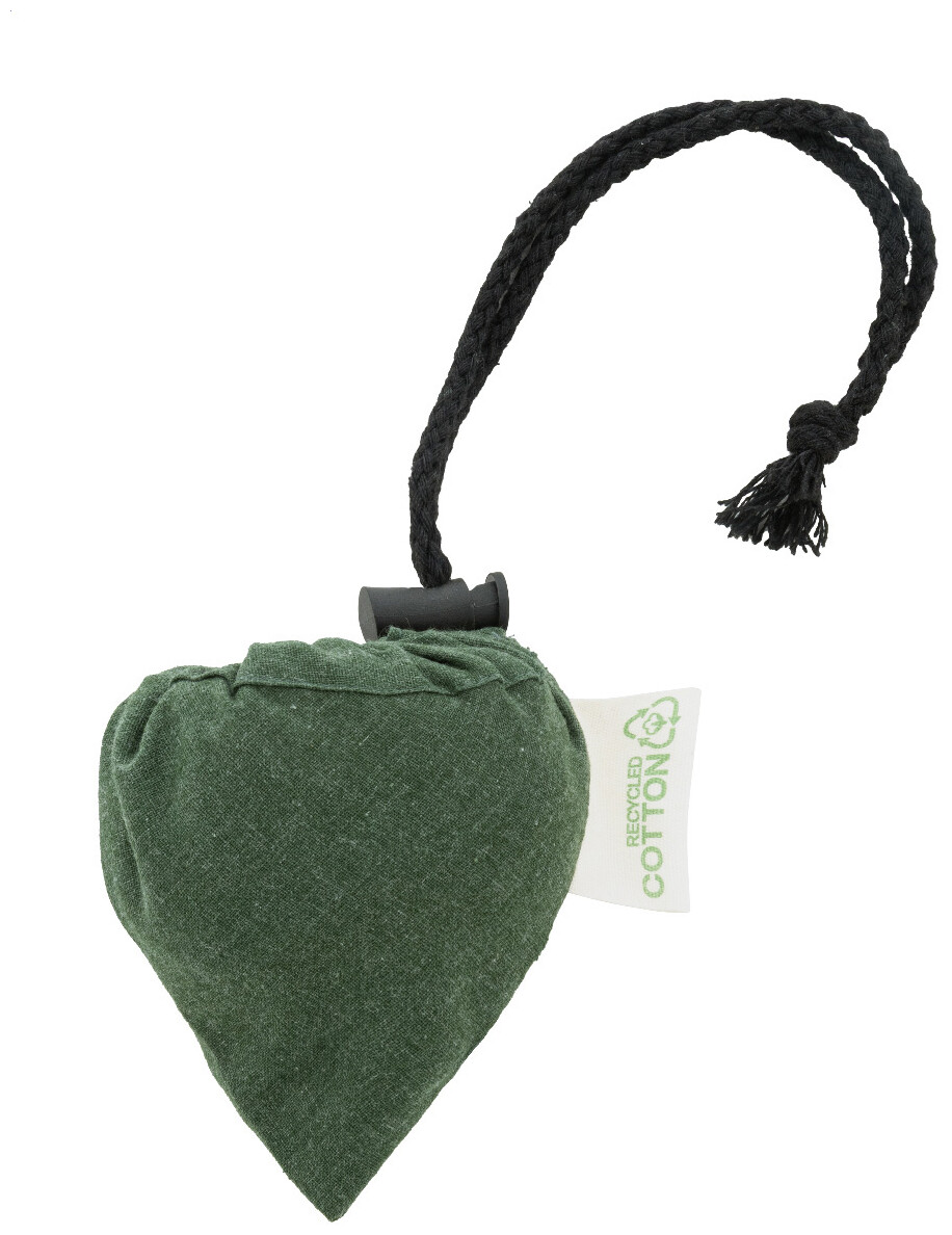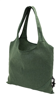 Skládací nákupní taška ze 70 % recyklované bavlny a 30 % polyesteru RPET, 140 g/m2. S výrazným štítkem z recyklované bavlny.