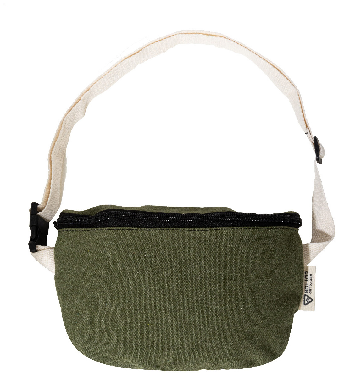 Ledvinka z recyklovaného plátna s přihrádkou na zip a nastavitelným popruhem. 70 % recyklované bavlny a 30 % recyklovaného polyesteru. S výraznou etiketou z recyklované bavlny.