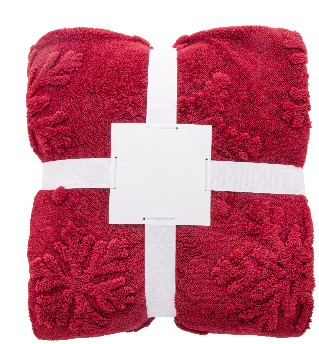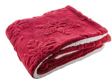 Luxusní dvouvrstvá vánoční deka z RPET s žakárovým vzorem sněhových vloček. S korálovým fleecovým materiálem RPET 260 g/m2 a oboustrannou podšívkou z RPET sherpa fleecu 210 g/m2. Zabaleno do stuhy a tisknutelného papírového kartonu.