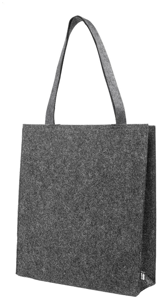 Nákupní taška z RPET plsti s klínkem a dlouhými uchy. S výraznou etiketou z RPET.