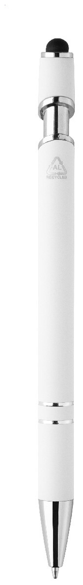 Kuličkové pero a pero pro dotykovou obrazovku z recyklovaného hliníku s pogumovaným tělem a chromovanými detaily. S modrou náplní.