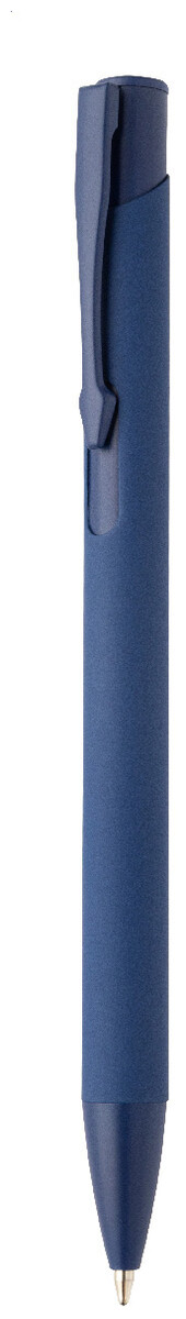 Kuličkové pero z recyklovaného hliníku s pogumovaným tělem a barevnými lesklými kovovými díly. Se speciálním povrchem pro zrcadlové gravírování, které odpovídá kovovým částem. S modrou náplní.