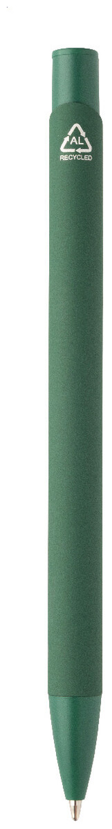 Kuličkové pero z recyklovaného hliníku s pogumovaným tělem a barevnými lesklými kovovými díly. Se speciálním povrchem pro zrcadlové gravírování, které odpovídá kovovým částem. S modrou náplní.