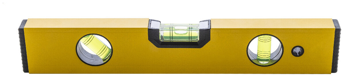 Magnetická vodováha z recyklovaného hliníku se třemi vodováhami (horizontální, vertikální a 45°) a 30cm pravítkem.