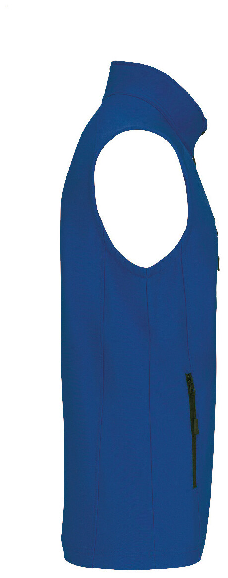 Třívrstvá, prodyšná, větru a voděodolná softshellová vesta na tělo se zipem a náprsními a bočními kapsami na zip. S prodyšnou střední vrstvou a vnitřní vrstvou z micro polar fleecu. Materiál: 95 % polyester a 5 % elastan, 300 g/m2. Výrobek značky Kariban.