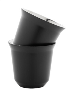 Sada 2 dvoustěnných termohrnků na espresso ve tvaru kávových kapslí z recyklované nerezové oceli, 80 ml. V krabičce z kraftového papíru.