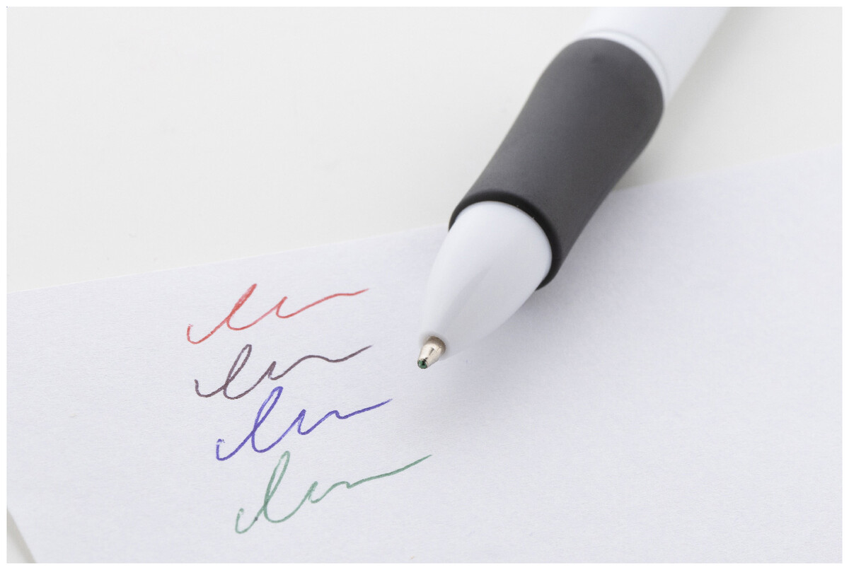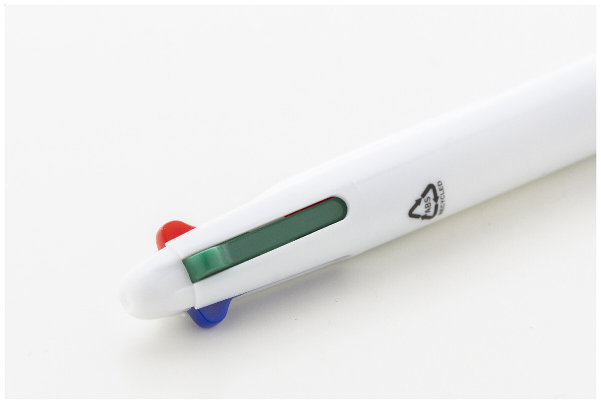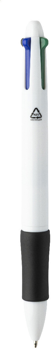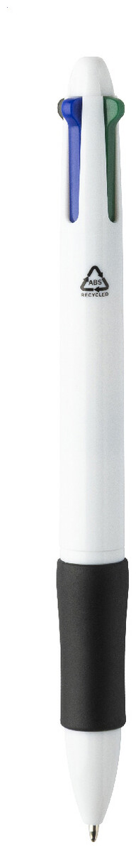 Vícebarevné kuličkové pero z recyklovaného ABS materiálu s gumovým úchopem. S černou, modrou, červenou a zelenou náplní.