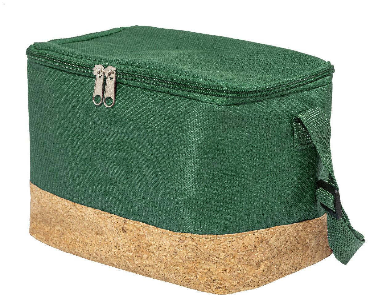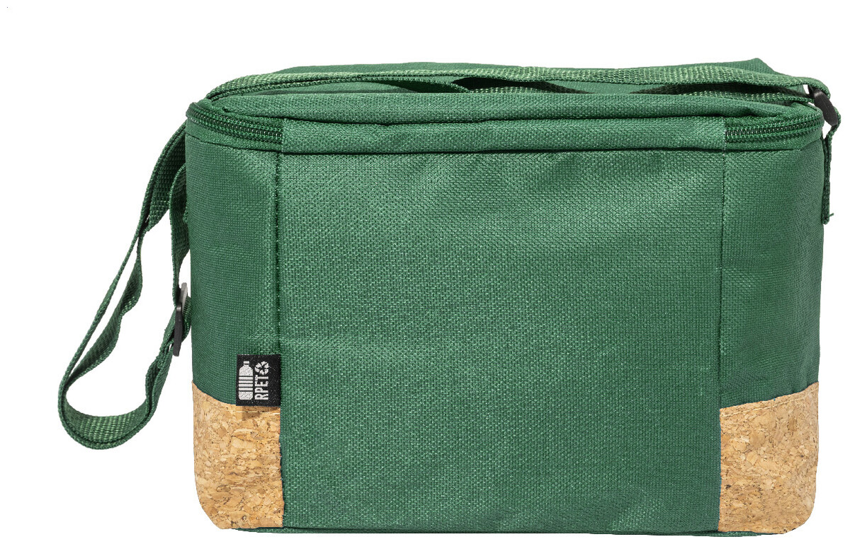 Chladicí taška na zip z 600D RPET polyesteru s přírodní korkovou základnou, PEVA polstrováním a nastavitelným ramenním popruhem. S výrazným štítkem RPET.