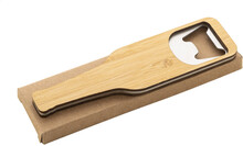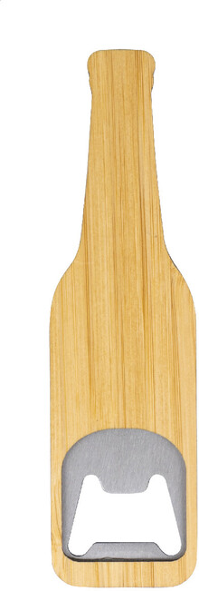 Otvírák na lahve z nerezové oceli ve tvaru lahve s bambusovým povrchem.