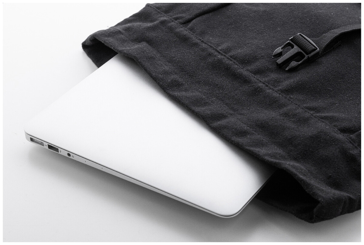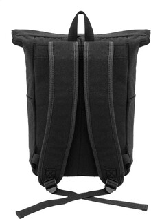 Rolovací batoh z recyklovaného plátna se zapínáním na přezku a přední kapsou na zip z měkké recyklované PU kůže. S polstrovanou přihrádkou na notebook (15"), bočními kapsami, polstrovanými zády a ramenními popruhy. 70% recyklované bavlny a 30% RPET polyesteru. S výrazným štítkem z recyklované bavlny.