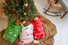 Nákupní taška z netkané textilie RPET s vánočním designem a vysekávanými uchy, 80 g/m2.