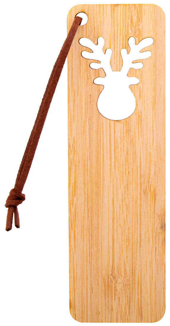 Bambusová záložka do knihy s vyřezaným vánočním motivem a poutkem z PU kůže.