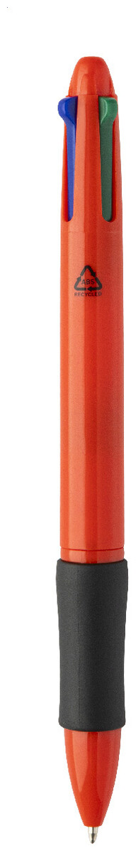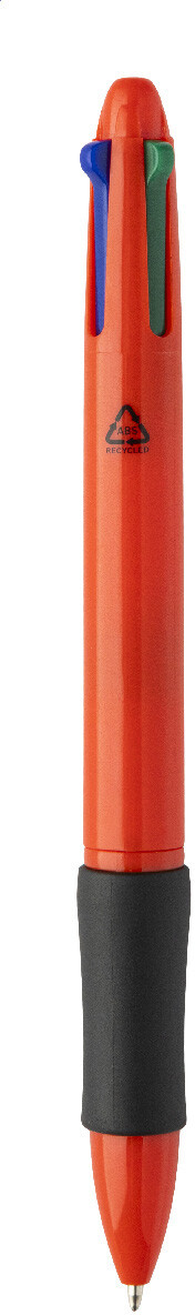 Vícebarevné kuličkové pero z recyklovaného ABS materiálu s gumovým úchopem. S černou, modrou, červenou a zelenou náplní.