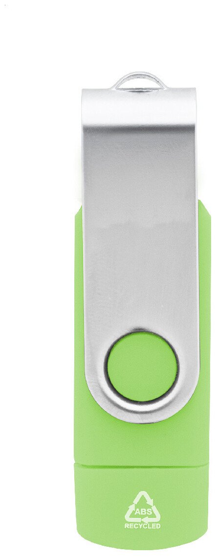 Otočný USB flash disk OTG v pouzdře z recyklovaného ABS a kovu s pamětí 8/16/32 GB. S připojeními USB a USB-C. USB 2.0.