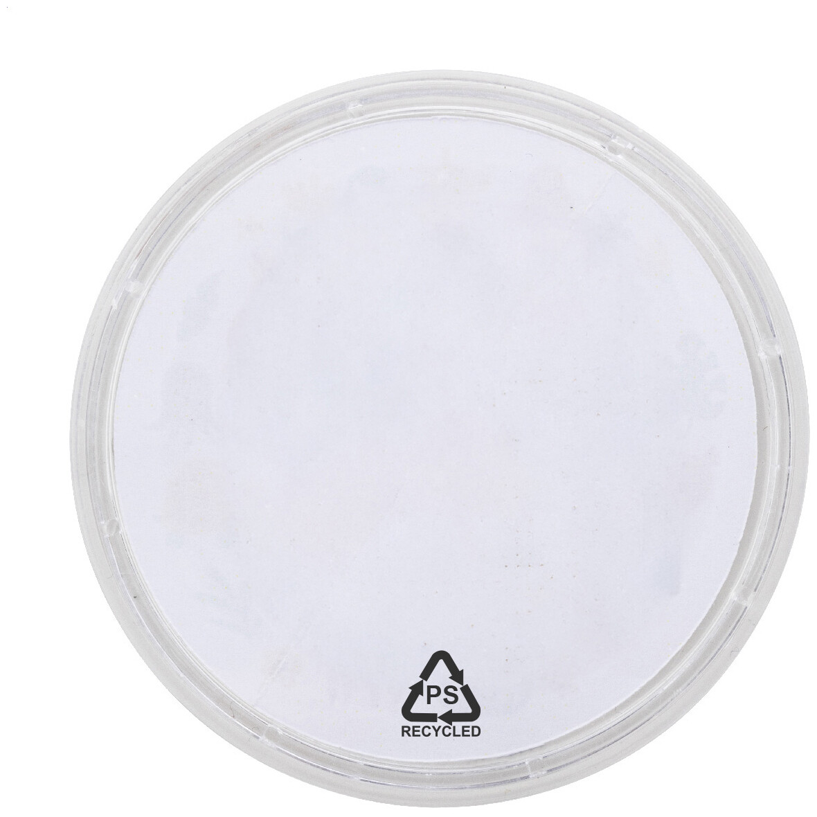 Kulatý labyrint z recyklovaného PS se třemi kovovými kuličkami. S barevnou papírovou vložkou na míru. Cena zahrnuje digitální tisk na obou stranách, nezahrnuje tiskovou přípravu. Min. mn.: 100 ks.