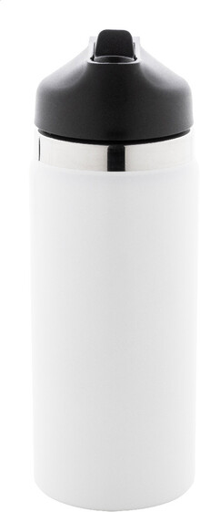 Dvoustěnná vakuová láhev z recyklované nerezové oceli s odklápěcím víčkem z PP, rukojetí a integrovaným brčkem. 500 ml.