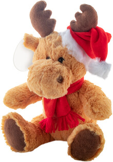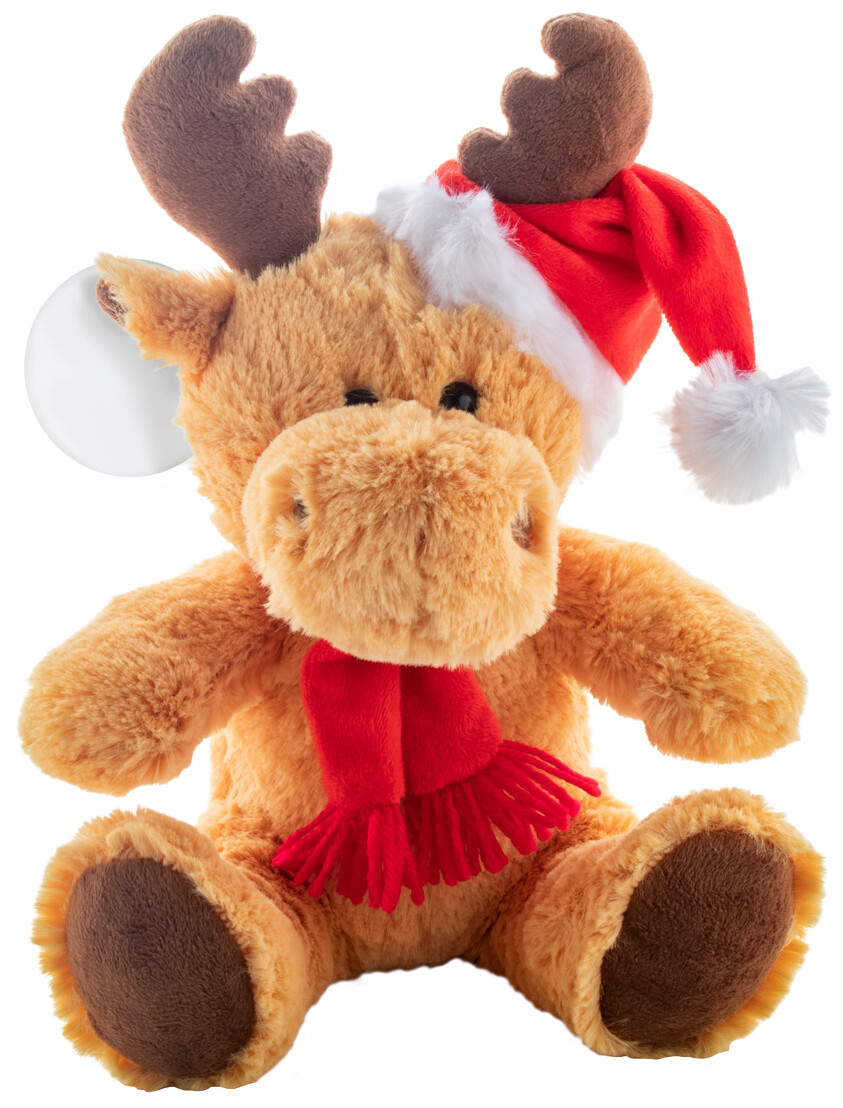 Plyšový vánoční sob s santa čepicí a šátkem. S potisknutelnou visačkou na uchu.