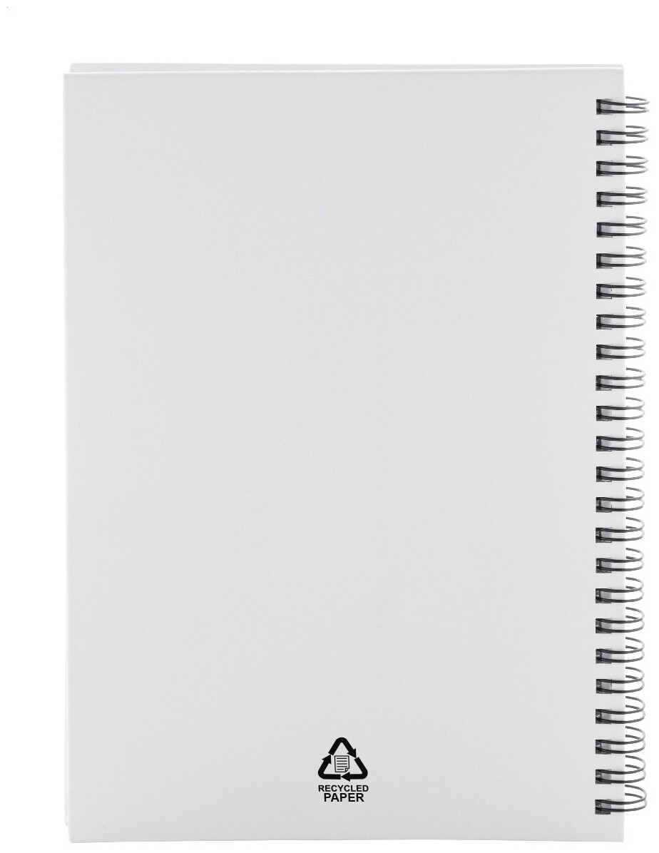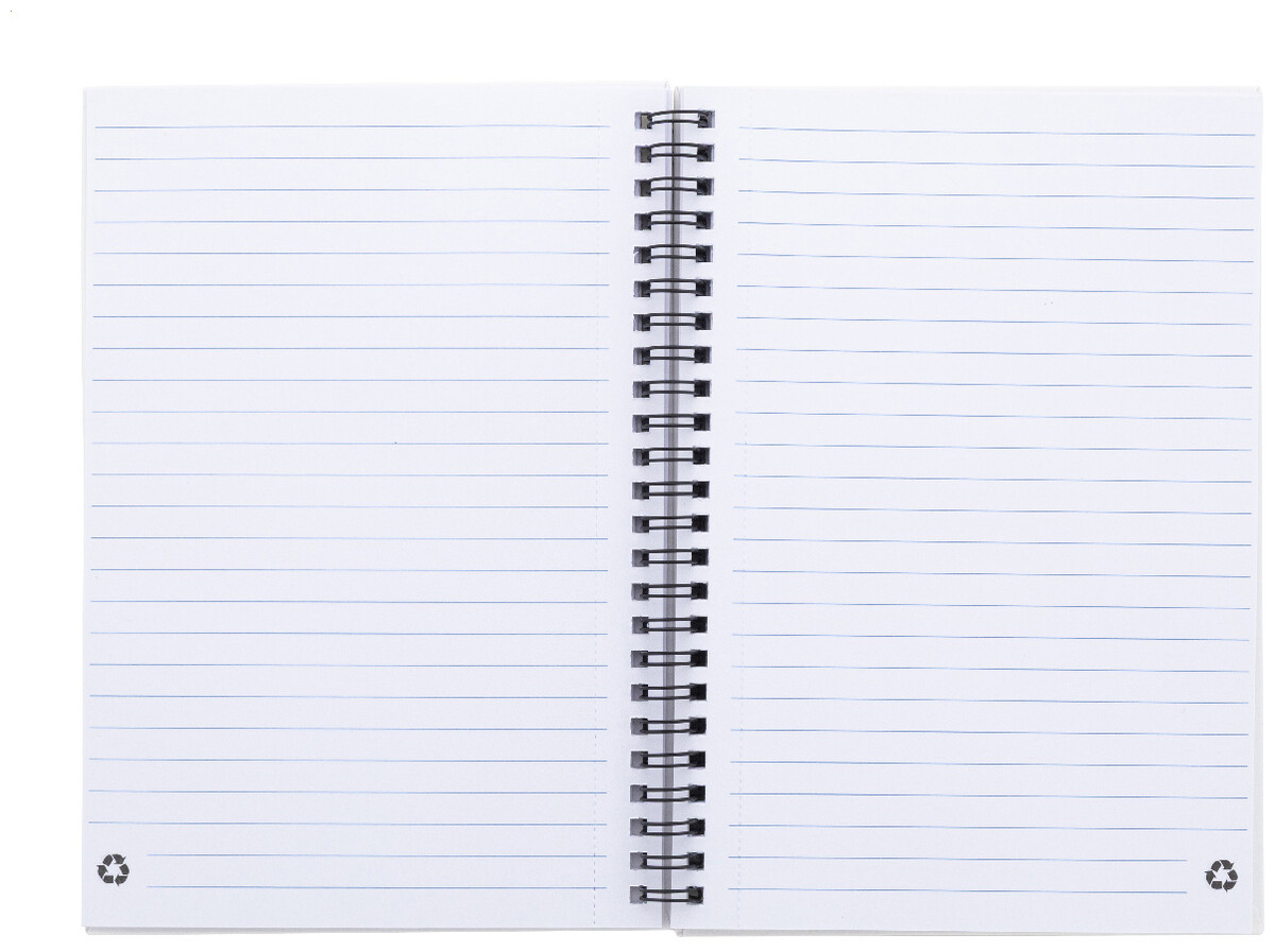 Spirálový blok A5 s 80 linkovanými listy z recyklovaného papíru.
