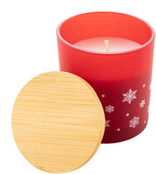 Vonná vosková svíčka na rostlinné bázi v matném skleněném svícnu s vánoční ozdobou ve tvaru sněhové vločky a bambusovým víčkem. Se 120 gramy vosku. V krabičce z kraftového papíru.
