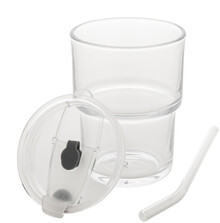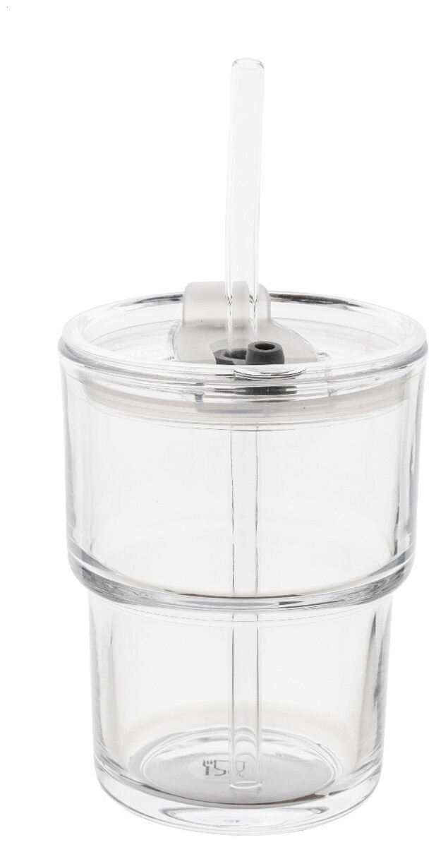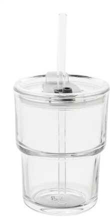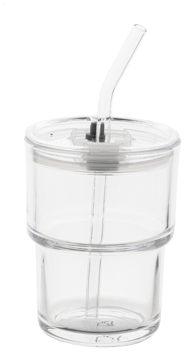 Skleněný cestovní hrnek s plastovým víčkem a skleněným brčkem. 400 ml.