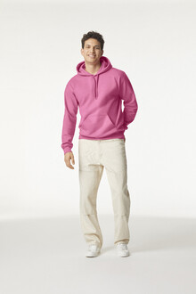 Mikina s kapucí, 80% bavlna a 20% polyester s přední kapsou. 285 g/m2 (bílá 278 g/m2). Značka Gildan.