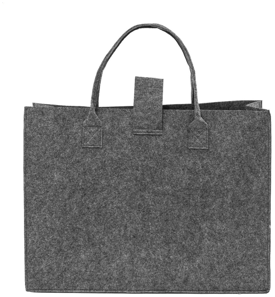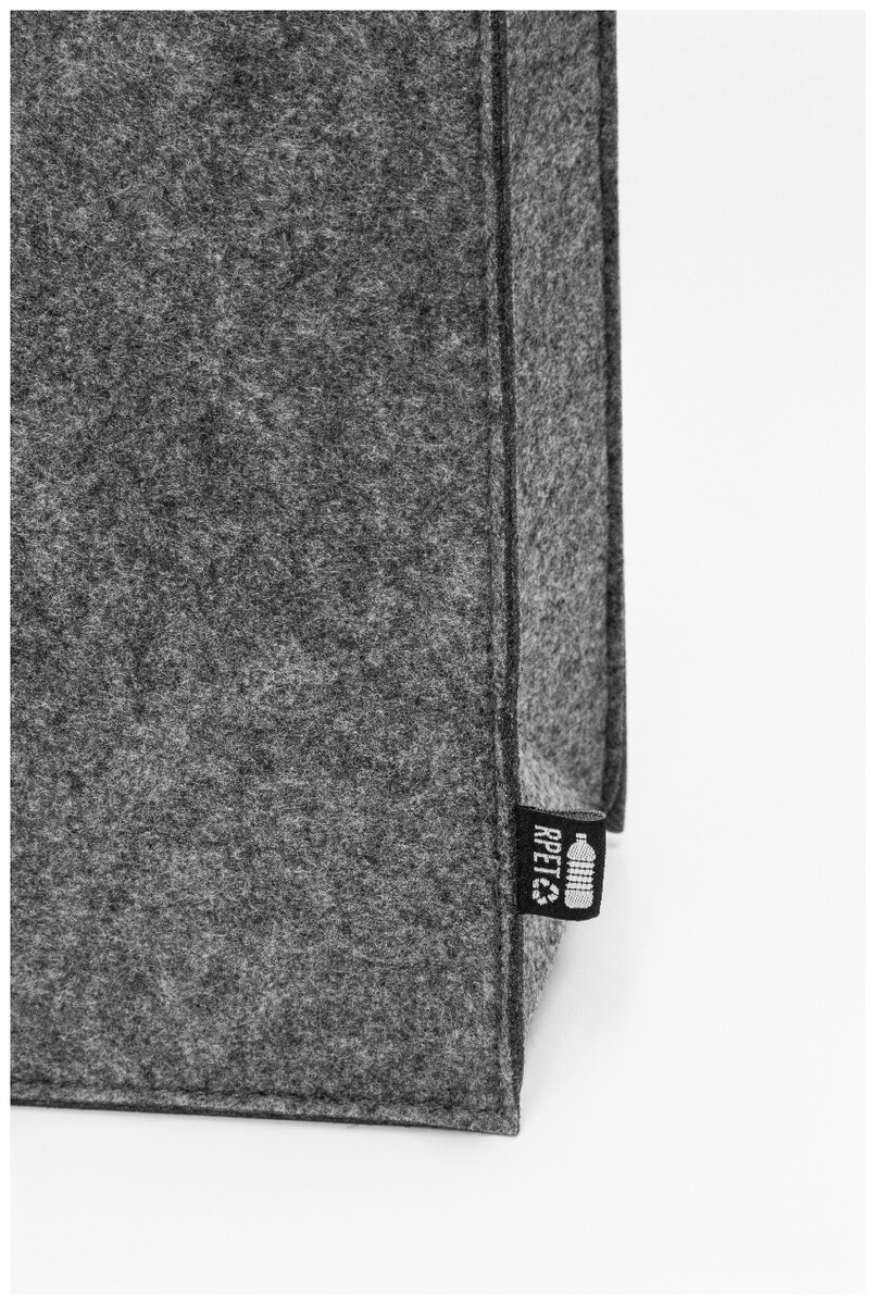 Nákupní taška z RPET plsti s klínkem, zapínáním na knoflíky a krátkými uchy. S výraznou etiketou z RPET.