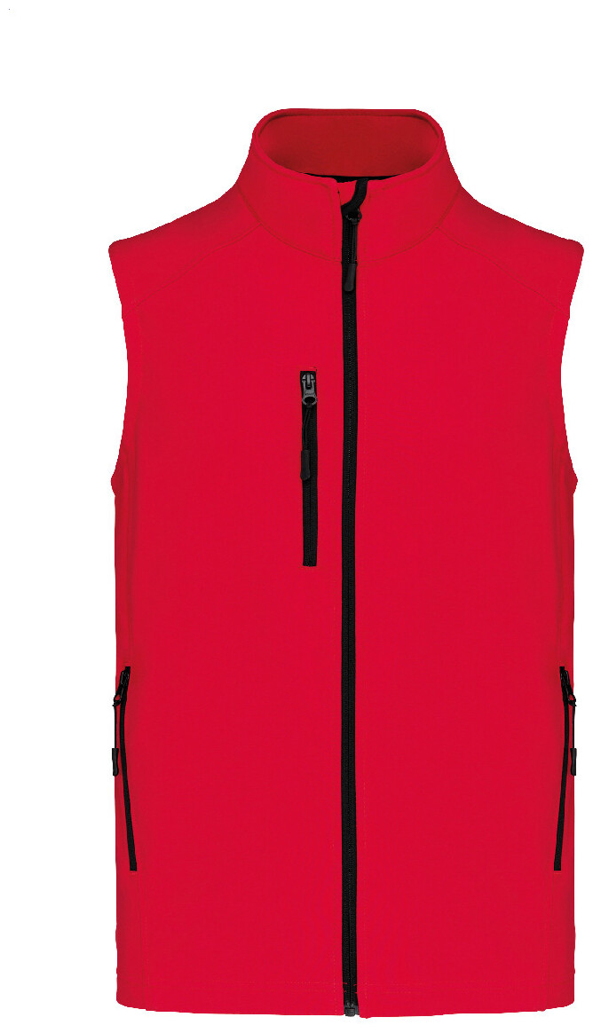 Třívrstvá, prodyšná, větru a voděodolná softshellová vesta na tělo se zipem a náprsními a bočními kapsami na zip. S prodyšnou střední vrstvou a vnitřní vrstvou z micro polar fleecu. Materiál: 95 % polyester a 5 % elastan, 300 g/m2. Výrobek značky Kariban.