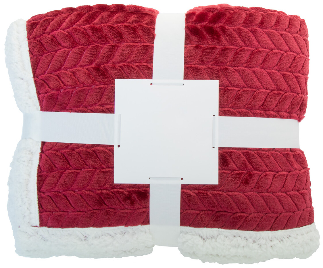 Dvouvrstvá RPET deka se žakárovým vzorem ze 240 g/m2 flanelového fleecu RPET a oboustrannou podšívkou 210 g/m2 RPET sherpa fleecu. Zabalené do stuhy a potisknutelné papírové karty.