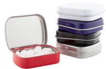 Obdélníková kovová krabička s cca. 25 gramů mmentolových bonbónů.