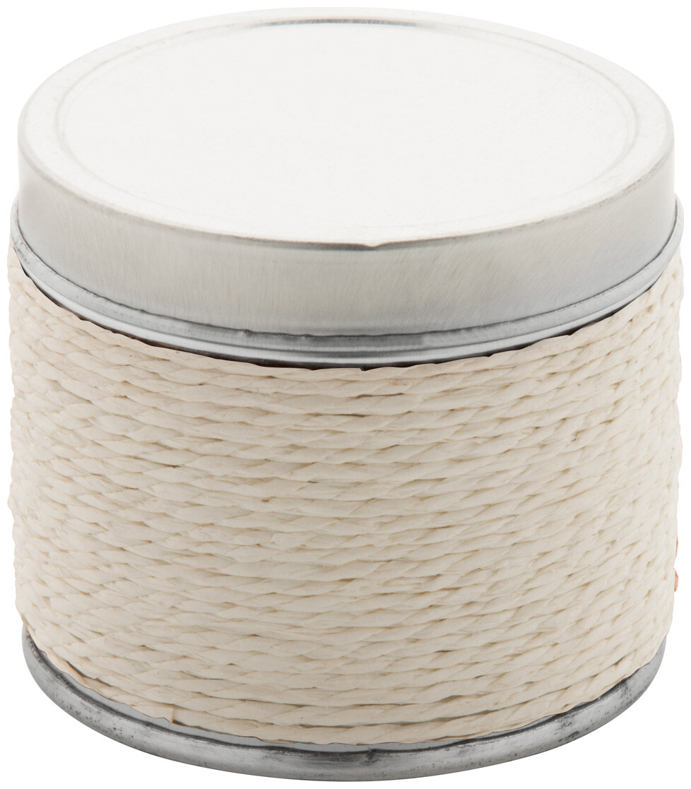 Vonná svíčka v kovové krabičce omotané provázkem.