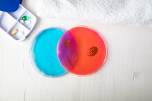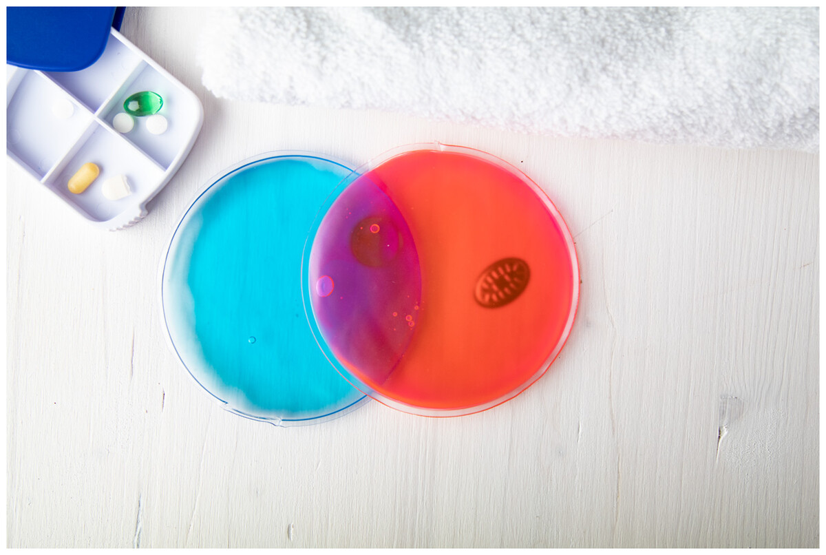 Transparentní tepelný, opakované použitelný, polštářek s barevným gelem.