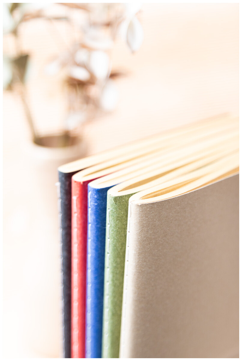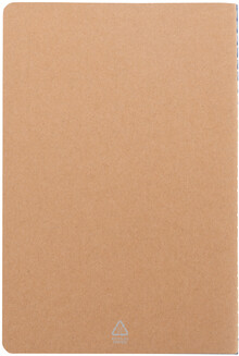 Blok A5 potažený recyklovaným papírem se šitými deskami a 60 linkovanými listy z recyklovaného kraftového papíru.